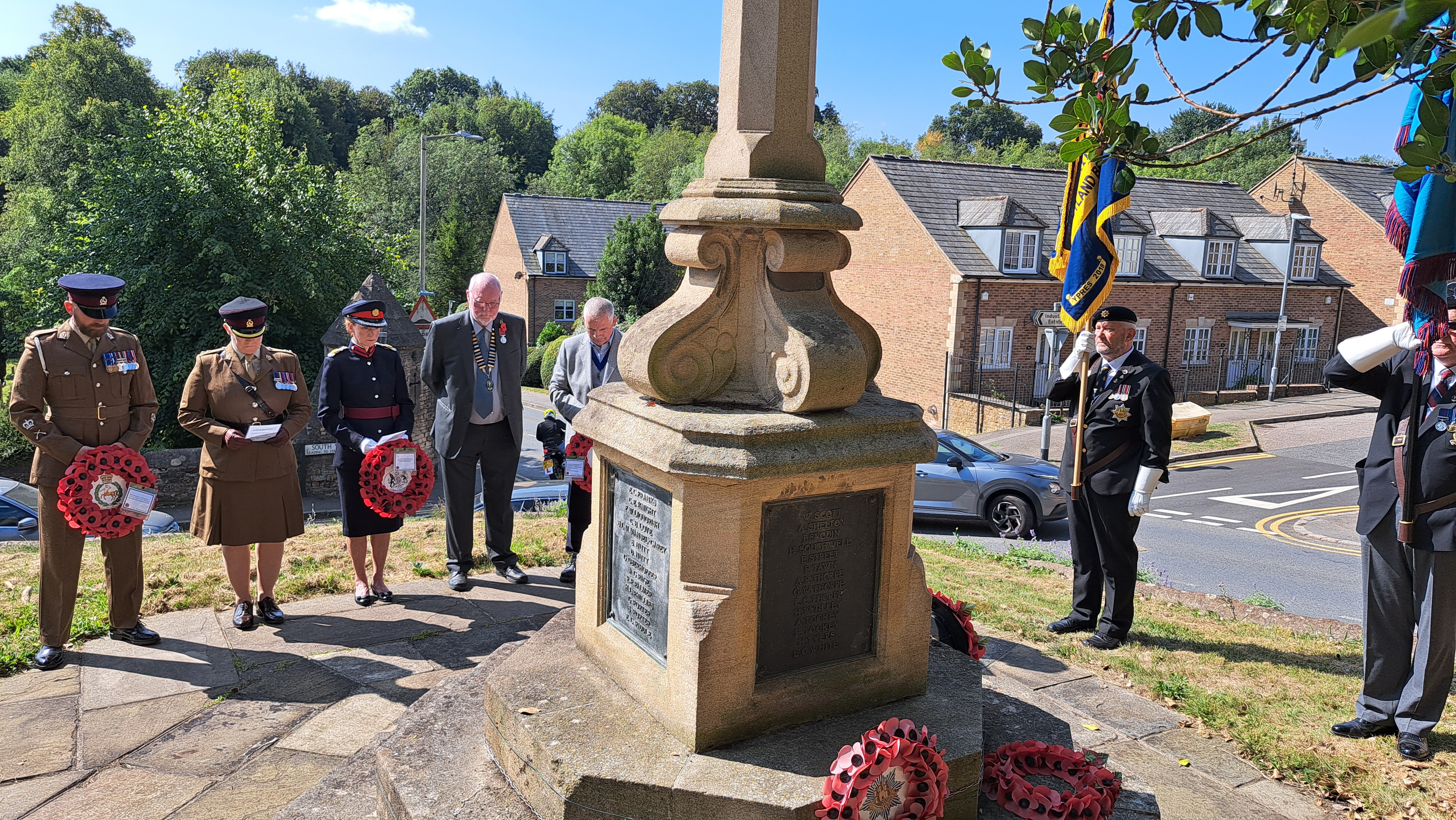 Wreaths were laid by the Mayor on behalf of the people of Uppingham, Vice Lord-Lieutenant of Rutland, Jeannette Warner, represented the County and our serving Military were represented by 1st Regiment Military Working Dogs based at St George's barracks. Rutland's veteran community was represented by the County standards of the Royal British Legion and the Royal Air Force Association.