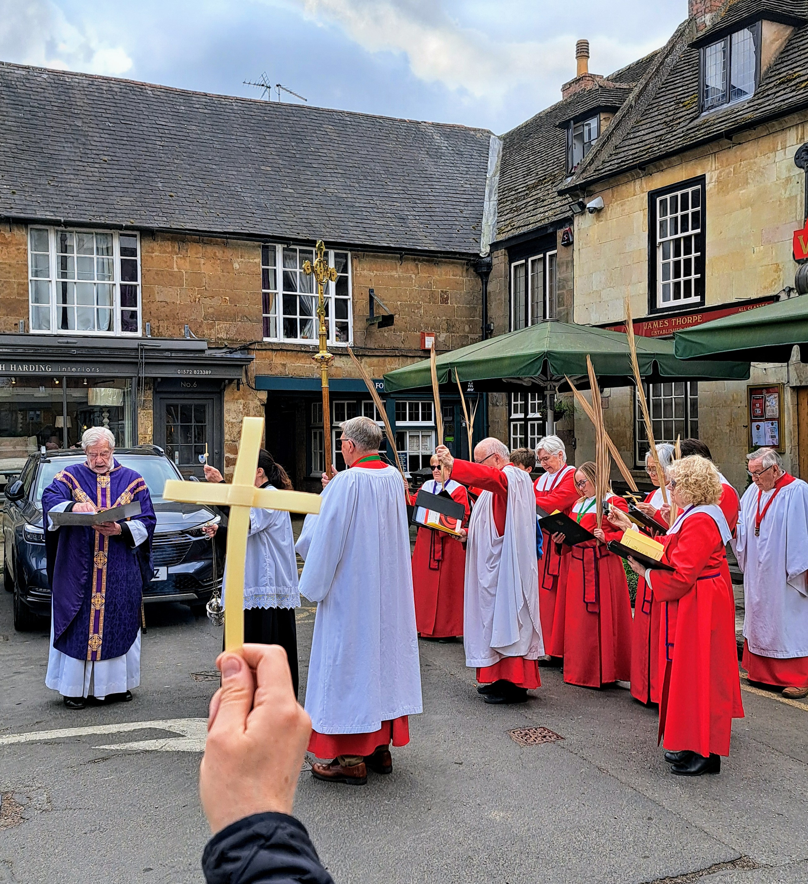 The Parish Church Choir led worshippers as they gathered in the Market Place before processing in song into the church for our Palm Sunday service